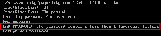 위와 같이 root 계정의 패스워드 복잡성을 설정하시기 바랍니다.
