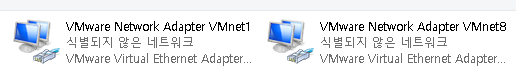 아래를 보시면 Vmnet1(Host-only)과 VMnet8(NAT)이 기본 값으로 구성되어 있습니다.