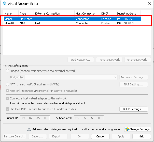 Virtual Network Editor는 VMware의 전체 네트워크 어댑터를 구성하는 관리자 툴입니다.
